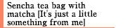 Recommended as a small gift. It has a triangular shape that makes it easy for the tea leaves to spread out, and since it also contains matcha, it is not only fragrant but also has a deeper flavor.