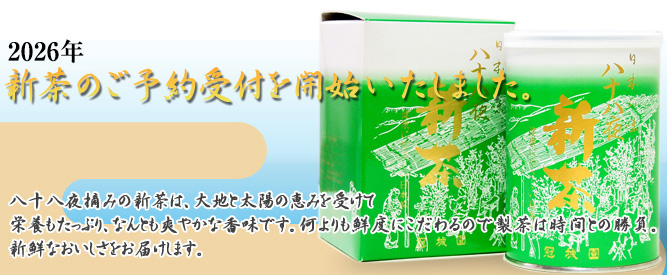 『八十八夜摘み予約新茶』の入荷時期は4月末〜5月上旬。今年の入荷時期が確定しましたらご予約の方にメールでご連絡致します。